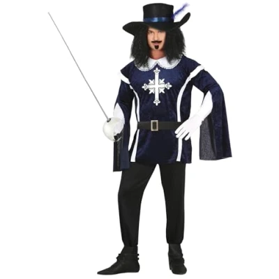 CONTENTS of Musketeer Costume: Hat, jacket, belt, trousers. NOT INCLUDED: accessories. COSTUME SIZE GUIDE: Men L 42-44 APPROXIMATE COSTUME DIMENSIONS: Chest 40"- 42" Waist 36"-37" Hips 42"- 44" MATERIALS: This fancy dress is made of polyester and conforms to all safety standards FIESTAS GUIRCA: a great choice for your fancy dress or theme party, Manufacturer: FIESTAS GUIRCA