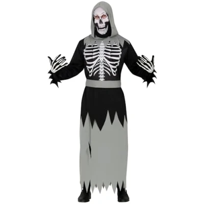 BECOME A MYSTIC SKELETON! - Includes hood, belt, and robe. Does not include mask or gloves. Perfect for scaring at Halloween and standing out at any party! DIMENSIONS - Size 42-44 (L). Ideal for adults, with a comfortable and spacious fit. MYSTIC SKELETON COSTUME FOR ADULTS - Crafted from polyester. Perfect for Halloween and spooky parties. Colours: black and green. BECOME A MYSTICAL AND TERRIFYING SKELETON! - This adult skeleton fancy dress includes a hood, belt, and tunic. Perfect for Halloween and spooky parties. Having fun has never been so chilling! COSTUMES AND ACCESSORIES FOR ALL OCCASIONS - At Fiestas Guirca, we have costumes, accessories, and decorations for Halloween, Carnival, Hen/Stag Parties, and more. Visit our Amazon store to explore further., Manufacturer: FIESTAS GUIRCA