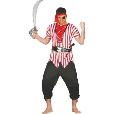CONTENTS of this overseas pirate mens fancy dress costume: Shirt, Belt, Trousers, Headband. NOT_INCLUDED: Further pirate accessories COSTUME SIZE GUIDE: Men M 38-40 APPROXIMATE DIMENSIONS OF THIS FANCY DRESS: Chest 37"- 39" Waist 33"- 35" Hips 38"-39" MATERIALS: These fancy dress costumes for men are made of 100% polyester and meet all safety standards so that you can have a great time at your next costume party. FIESTAS GUIRCA adult fancy dress costumes men: a great choice for your fancy dress or theme party, Manufacturer: FIESTAS GUIRCA