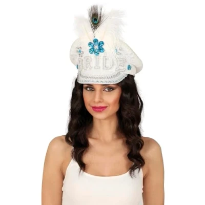 FIESTAS GUIRCA Pride Police Cap with Feathers and Gems (One Size) Fancy Dress Accessory for Bride To Be Parties Hen Do's Ideal Unisex Adults White