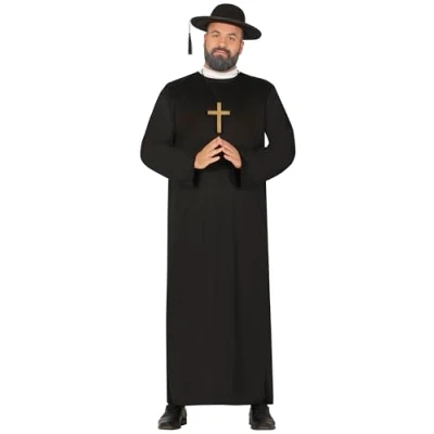 CONTENTS of this priest mens fancy dress costume: robe with clerical collar. NOT_INCLUDED: cross pendant, further priest accessories COSTUME SIZE GUIDE: Men 46-48 (XXL) APPROXIMATE DIMENSIONS OF THIS FANCY DRESS: Chest 47-48 inches, Waist 42.5-44 inches, Hips 49-50 inches MATERIALS: These fancy dress costumes for men are made of 100% polyester and meet all safety standards so that you can have a great time at your next costume party. FIESTAS GUIRCA adult fancy dress costumes men: a great choice for your fancy dress or theme party, Manufacturer: FIESTAS GUIRCA