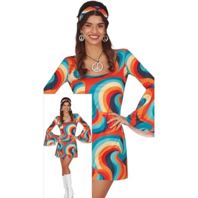 CONTENTS of this psychedelic hippie fancy dress women: headband, dress. NOT_INCLUDED: Boots, Hippie accessories COSTUME SIZE GUIDE: Women 14-16 (L) APPROXIMATE DIMENSIONS OF THIS FANCY DRESS: Bust 39-40.5 inches, Waist 31-33 inches, Hips 41.5-43 inches MATERIALS: These adult fancy dress costumes women are made of 100% polyester and meets all safety standards so that you can have a great time at your next costume party. FIESTAS GUIRCA womens fancy dress costumes adult: a great choice for your carnival, fancy dress or theme party, Manufacturer: FIESTAS GUIRCA