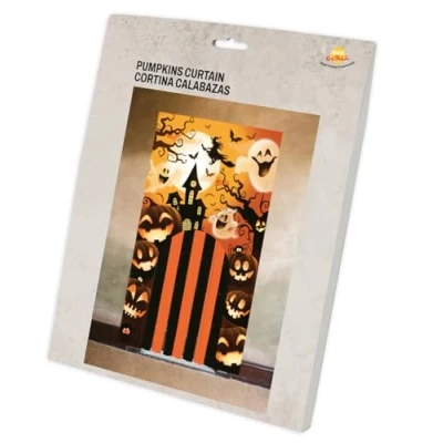 DECORATE YOUR DOOR FOR HALLOWEEN! - Includes the decorative curtain with pumpkins. Does not include the girl, hat, or other items in the image. Create a spooky atmosphere at your party! DIMENSIONS - Decorative door curtain with pumpkin design, measuring 145 cm wide and 240 cm high. MATERIALS - Made from polyester, perfect for decorating your Halloween party. Product colour: multicolour. SPOOKY HALLOWEEN DECORATION! - Pumpkin curtain perfect for adding a chilling touch to your parties. Having fun has never been so enjoyable! COSTUMES AND ACCESSORIES FOR ALL OCCASIONS - At Fiestas Guirca, we have costumes, accessories, and decorations for Halloween, Carnival, Hen/Stag Parties, and more. Visit our Amazon store for more., Manufacturer: FIESTAS GUIRCA
