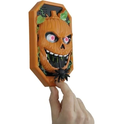 WELCOME THE SPIRITS! - Includes pumpkin doorbell with light, sound, and movement. Does not include the spider or other decorative elements. Perfect for scaring your guests this Halloween! DIMENSIONS - Pumpkin doorbell with light, sound and movement, measures 7.9x4.3 in. Perfect for adding a fun touch to your Halloween parties! SURPRISE YOUR GUESTS! Pumpkin doorbell with light, sound, and movement, perfect for Halloween. Made from durable PVC, fun and sturdy. Colour: orange. SCARE WITH EVERY RING! - Decorate your Halloween with this pumpkin doorbell that emits light, sound, and movement. Perfect for frightening and entertaining at your parties! COSTUMES AND ACCESSORIES FOR ALL OCCASIONS - At Fiestas Guirca, we have costumes, accessories, and decorations for Halloween, Carnival, Hen/Stag Parties, and more. Visit our Amazon store to see more., Manufacturer: FIESTAS GUIRCA, S.L.