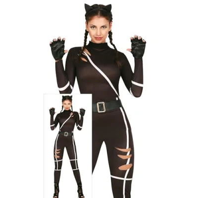 CONTENTS of this purrfect black cat women fancy dress costume: cat ears headband, jumpsuit, belt. NOT_INCLUDED: gloves COSTUME SIZE GUIDE: Women 14-16 (L) APPROXIMATE DIMENSIONS OF THIS FANCY DRESS: Bust 39-40.5 inches, Waist 31-33 inches, Hips 41.5-43 inches MATERIALS: These Halloween fancy dress costumes are made of 100% polyester and meet all safety standards so that you can have a great time at your next costume party. FIESTAS GUIRCA fancy dress costumes for men and women: a great choice for your theme party or Halloween party, Manufacturer: FIESTAS GUIRCA
