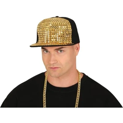 SHINE LIKE A TRUE RAPPER! - Includes the cap with gold rivets. Chain and t-shirt not included. Perfect for standing out at any 90s themed party! DIMENSIONS - One size fits all. Suitable for all users. RAPPER CAP WITH GOLD RIVETS - Perfect for standing out at any party. Made from polyester and polypropylene, it combines elegance and style. Colours: gold and black. SET THE BEAT AT EVERY PARTY! - Rapper cap with gold rivets, perfect for reliving the 90s. Make every celebration unforgettable and fun! COSTUMES AND ACCESSORIES FOR ALL OCCASIONS - At Fiestas Guirca, we offer fancy dress, accessories, and decorations for Halloween, Carnival, Hen/Stag parties, and more. Visit our Amazon store to explore further., Manufacturer: GUIRCA