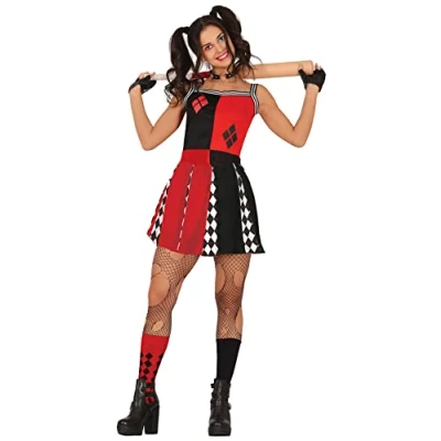 CONTENTS of this red and black harlequin cheerleader Halloween costume adult women: Dress. NOT_INCLUDED: baseball bat, tights, socks COSTUME SIZE GUIDE: Ladies L 14-16 APPROXIMATE DIMENSIONS OF THIS FANCY DRESS: Bust 39-40.5" Waist 31-33" Hips 41.5-43" MATERIALS: This Halloween costume for adults is made of polyester and meets all safety standards so that you can have a great time at your next costume party. FIESTAS GUIRCA Halloween Costumes for Women: a great choice for your fancy dress or theme party, Manufacturer: FIESTAS GUIRCA
