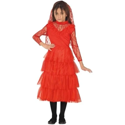 BECOME A LITTLE RED MERMAID! - Includes the red dress and veil. Tights and shoes not included. Perfect for shining at Halloween and other parties! Ideal for girls aged 7 to 9 years. DIMENSIONS - Children's size 7-9 years. Perfect for little ones, ensuring comfort and fun at every party. CHILDREN'S RED WIFE COSTUME - Made from fire-retardant polyester for added safety. Perfect for parties and carnivals. Colour: red. Suitable for ages 7 - 9 years. RED BRIDE COSTUME FOR HALLOWEEN! - Dress your little one in this gown and veil, perfect for spooky and fun parties. Guaranteed frights! COSTUMES AND ACCESSORIES FOR ALL OCCASIONS - At Fiestas Guirca, we have costumes, accessories, and decorations for Halloween, Carnival, Hen/Stag Parties, and more. Visit our Amazon store to explore further., Manufacturer: FIESTAS GUIRCA
