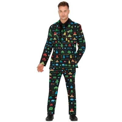 FIESTAS GUIRCA Retro Suit Mens Fancy Dress Costume 80s with Video Game Pattern Funny 90s Bachelor Party Stag Do Men Size M