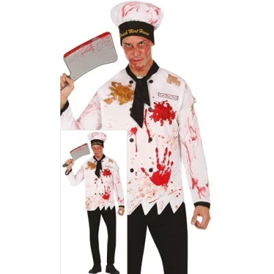 FIESTAS GUIRCA Sadistic Butcher Men Fancy Dress Costume Cannibalistic Chef including Chef's Hat and Coat Mens Halloween Costumes Adult Size L