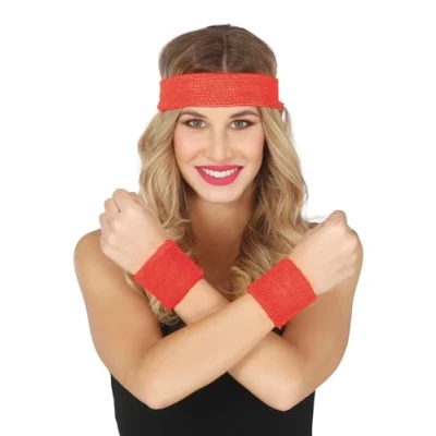 BACK TO THE 80S! - Includes 2 red wristbands and a headband. Clothing and other accessories not included. Perfect for standing out at any sports or themed party! DIMENSIONS - One size fits all. Suitable for all users. SET OF 2 RED WRISTBANDS AND HEADBAND - Made from polyester. Perfect for completing your fancy dress and standing out at any party. Colour: red. ADD A RETRO TOUCH TO YOUR PARTY! - Set of 2 red wristbands and headband, perfect for 80s themed parties and sports events. Having fun has never been so stylish! COSTUMES AND ACCESSORIES FOR ALL OCCASIONS - At Fiestas Guirca, we have costumes, accessories, and decorations for Halloween, Carnival, Hen/Stag Parties, and more. Visit our Amazon store to explore further.