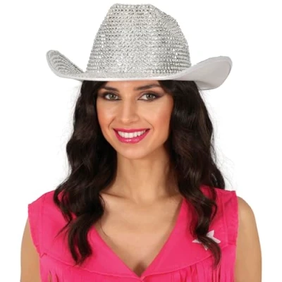 SHINE AT YOUR HEN DO! - Includes the sparkling silver hat. Other accessories and clothing not included. Be the centre of attention at the party! DIMENSIONS - One size fits all. Suitable for all users. GLITTER PARTY HAT FOR ADULTS - Made from polyester and polypropylene. Perfect for adding a touch of glamour to your celebrations. Colour: silver. SHINE AT YOUR PARTY IN COWBOY STYLE! - Sparkling silver hat for adults, perfect for stag dos and themed parties. Having fun has never been so glamorous! COSTUMES AND ACCESSORIES FOR ALL OCCASIONS - At Fiestas Guirca, we offer fancy dress, accessories, and decorations for Halloween, Carnival, Hen/Stag parties, and more. Visit our Amazon store to explore our full range., Manufacturer: GUIRCA