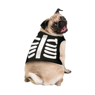 TURN YOUR PET INTO A FUN SKELETON! - Includes a tunic with a black and white skeleton design. Does not include other accessories or toys. Perfect for your furry friend to look spooky on Halloween and beyond! DIMENSIONS - Size M - DOG, measures 28 cm long and 20 cm wide. Perfect for your pet to look frightfully fun! SKELETON MASCOT COSTUME FOR DOGS - Made from polyester. Perfect for Halloween and themed parties. Colours: black and white. TURN YOUR PET INTO A FUNNY SKELETON! - Skeleton costume for dogs in size M, perfect for Halloween and themed parties. Fun and laughter guaranteed! FANCY DRESS AND ACCESSORIES FOR ALL OCCASIONS - At Fiestas Guirca, we have fancy dress, accessories, and decorations for Halloween, Carnival, Hen and Stag Parties, and more. Visit our Amazon store to see more.