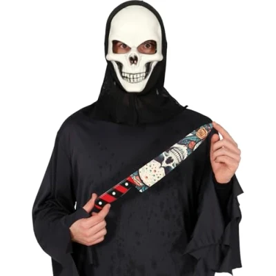 UNLEASH TERROR THIS HALLOWEEN! - Includes the 37 cm skull knife. Does not include the mask or costume. Perfect for completing your spooky look at any themed party! DIMENSIONS - 37 cm skull knife, ideal for adding a terrifying touch to your fancy dress costumes. MATERIALS - Made of PVC, ideal for complementing your Halloween costume. Product colour: multicolour. SCARE AT EVERY PARTY! - 37 cm skull knife, the perfect accessory for Halloween and horror parties. Having fun has never been so chilling! COSTUMES AND ACCESSORIES FOR ALL OCCASIONS - At Fiestas Guirca, we have costumes, accessories, and decorations for Halloween, Carnival, Hen/Stag Parties, and more. Visit our Amazon store to see more., Manufacturer: FIESTAS GUIRCA
