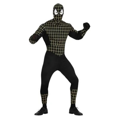 CONTENTS of black Spider Hero Costume: full-face mask, black and golden jumpsuit COSTUME SIZE GUIDE: Men L 42-44 APPROXIMATE COSTUME DIMENSIONS: Chest 40"- 42" Waist 36"-37" Hips 42"- 44" MATERIALS: This fancy dress is made of polyester and conforms to all safety standards FIESTAS GUIRCA: a great choice for your fancy dress or theme party, Manufacturer: FIESTAS GUIRCA