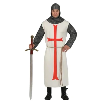 Templar St Georges Knight Costume Contents: Hood, Headband, Tunic, Belt Approximate Costume Dimensions: Chest 104 - 108 Cm, Waist 92 - 96 Cm, Hips 108 - 112 Cm Costume Size Guide: Mens Large This Adult Man Templar Outfit Is Made Of Polyester And Conforms To Safety Standards Fiestas Guirca: A Great Choice For Your Medieval And Princesses Themed Fancy Dress Party, Manufacturer: FIESTAS GUIRCA, S.L.