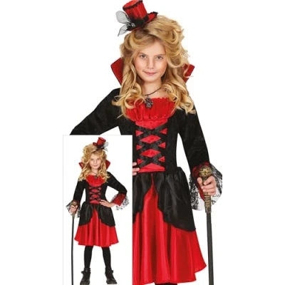 CONTENTS of this stylish vampire girls fancy dress costume: dress. NOT_INCLUDED: mini hat, jewellery, cane, tights COSTUME SIZE GUIDE: Halloween Costume Girls 7-9 Years KIDS COSTUME SUITABLE FOR HEIGHT: 49-53 Inches MATERIALS: This Halloween costume is made of 100% polyester and meets all safety standards, so that every girl can transform in a heartbeat into her favourite character. FIESTAS GUIRCA: a great choice of Halloween costumes for kids for your fancy dress party, Manufacturer: FIESTAS GUIRCA