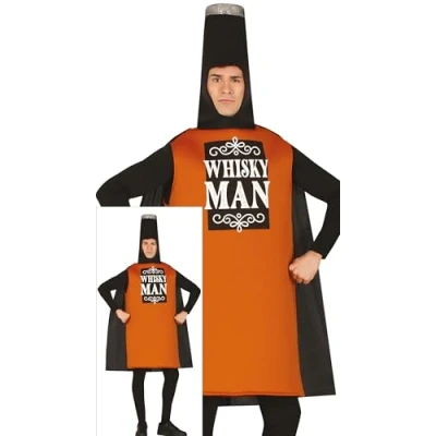 CONTENTS of this whiskey man fancy dress costume: bottle shaped tunic, cape. NOT_INCLUDED: black shirt, black pants, accessories COSTUME SIZE GUIDE: Men 42-44 (L) APPROXIMATE DIMENSIONS OF THIS FANCY DRESS: Chest 40-42 inches, Waist 36-37 inches, Hips 42-44 inches MATERIALS: These fancy dress costumes for men are made of 100% polyester and meet all safety standards so that you can have a great time at your next costume party. FIESTAS GUIRCA adult fancy dress costumes men: a great choice for your fancy dress or theme party, Manufacturer: FIESTAS GUIRCA