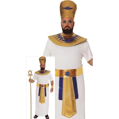 CONTENTS of this white pharaoh king of egypt mens fancy dress costume: hat, neckpiece, tunic, belt COSTUME SIZE GUIDE: Men 46-48 (XXL) APPROXIMATE DIMENSIONS OF THIS FANCY DRESS: Chest 47-48 inches, Waist 42.5-44 inches, Hips 49-50 inches MATERIALS: These fancy dress costumes for men are made of 100% polyester and meet all safety standards so that you can have a great time at your next costume party. FIESTAS GUIRCA adult fancy dress costumes men: a great choice for your fancy dress or theme party, Manufacturer: FIESTAS GUIRCA