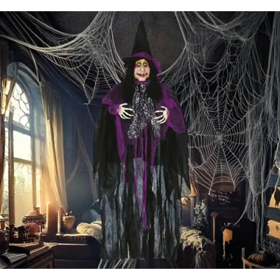FIESTAS GUIRCA Witch Pendant with Light and Sound (120 cm) Halloween Decoration for Parties Celebrations Ideal Spooky Environments Scary Scenes Grey Black