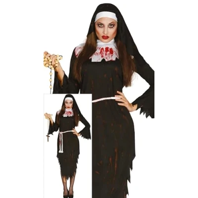 CONTENTS of this zombie nun women fancy dress costume: headpiece, belt, dress. NOT_INCLUDED: nun accessories, tights COSTUME SIZE GUIDE: Women 18-20 (XL) APPROXIMATE DIMENSIONS OF THIS FANCY DRESS: Bust 42.5-45 inches, Waist 36-39 inches, Hips 43.5-49 inches MATERIALS: These Halloween fancy dress costumes are made of 100% polyester and meet all safety standards so that you can have a great time at your next costume party. FIESTAS GUIRCA fancy dress costumes for men and women: a great choice for your theme party or Halloween party, Manufacturer: FIESTAS GUIRCA