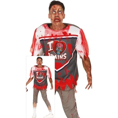 FIESTAS GUIRCA Zombie Quarterback Men Fancy Dress Costume Rugby American Football High School Uniform Mens Halloween Costumes Adult Size M