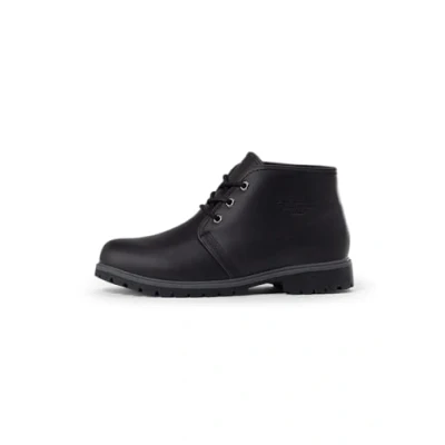 Robust ankle boot. Hexagon eyelets. Strong debossed brandmark logo.