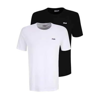 FILA Men's Brod Tee/Double Pack T Shirt, Black Bright White, XXL