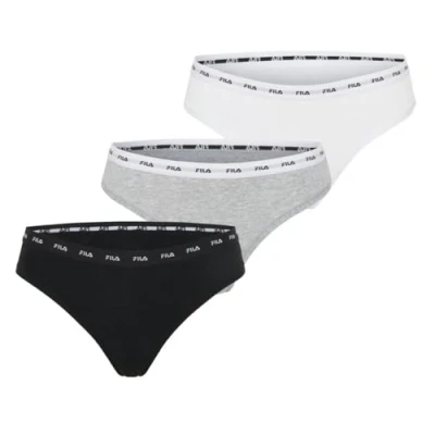 FILA Women's Thong Panties (Pack of 3), White/Grey/Black, S