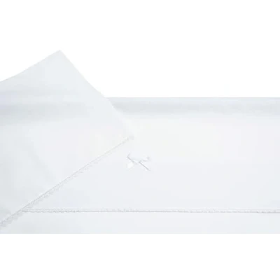 Filet 3 Piece Fitted Sheet Set for Pram in Plain White, 1 Sheet, Top with Embroidered Aida Band and Pillowcase, Made Italy, White