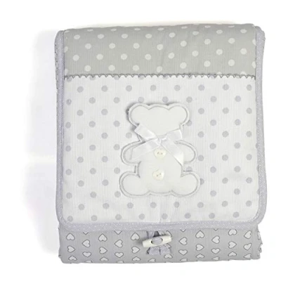 Travel changing mat, ideal for changing your baby safely and comfortably when you are out of the house Ideal for storing baby care products Closed measures 24 x 28 x 6 cm, open measures 45 x 76 cm A cute and useful gift idea for the newborn and newborns with a cute bear embroidery Made and packaged in Italy, with high quality raw materials