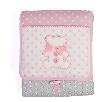 Travel changing mat, ideal for changing your baby safely and comfortably when you are out of the house Ideal for storing baby care products Closed measures 24 x 28 x 6 cm, open measures 45 x 76 cm A cute and useful gift idea for the newborn and newborns with a cute bear embroidery Made and packaged in Italy, with high quality raw materials Material Composition: Outer 100% Cotton, Filling 100% Polyester