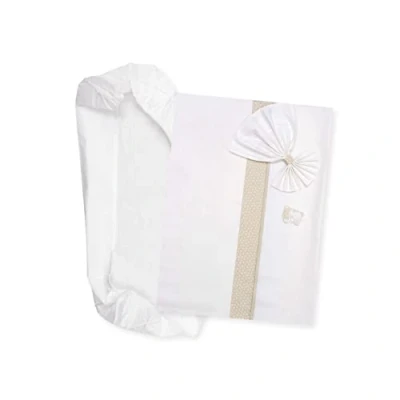 FILET Baby Carrycot Sheet Set White and Dove grey, Composed of 1 Fitted with Corners, Top Aida Band to Embroider Pillowcase, 100% Cotton, Made in Italy