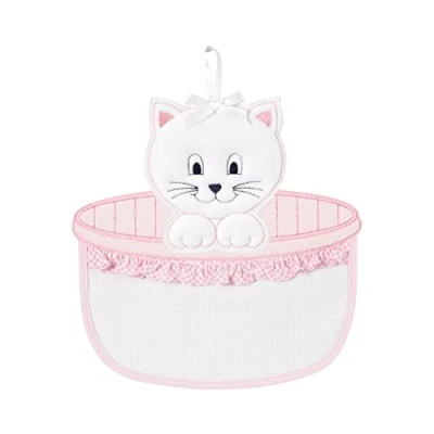 FILET Kitten Birth Ribbon Aida Canvas Basket for Embroidery, Ideal Hanging to Announce The of a Girl, 100% Made in Italy, Pink and White