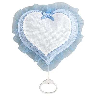 FILET Musical Birth Band, Heart Shaped Cocktail with Glockenspiel, Aida Canvas Insert for Embroidery, Made in Italy, Colour Sky