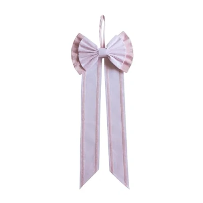 FILET Newborn Bow with Aida Tails for Embroidery, Made of 100% Cotton, Ideal Hanging to Announce The Birth a Baby, in Italy, Colour Pink