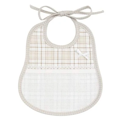 FILET Oval Bib with Pocket in Aida Fabric to be Embroidered, Made of Cotton Pique Scottish Print, Ideal Product for Newborn Babies, 100% Italy, Size 24x20 cm, Color: Dove Grey