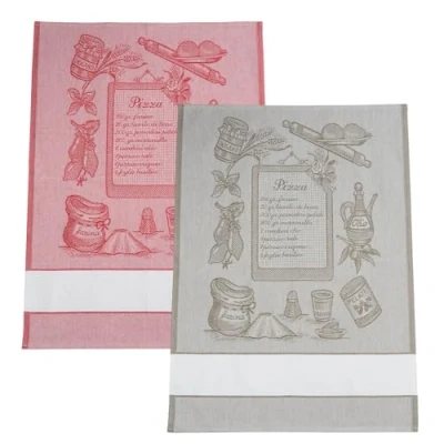 Filet Set of 2 Jacquard Tea Towels for Kitchen with Aida Insert 55 Holes to Embroider, Ideal Drying Dinnerware, Made in Italy, Pizza Design, Red and Rope