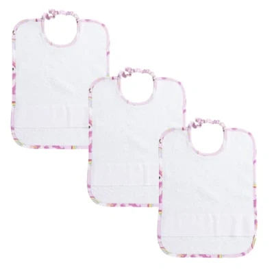 Filet Set of 3 Nursery Bibs with Elastic High Quality Material in White Terry Cloth Embroidered Aida Border Unicorn Print Made Italy