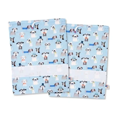 FILET Set of Two Printed Cotton Nursery Bags, Changing Layette Shoe with Aida Canvas to Embroider, Made in Italy, 42 x 34 cm, Doggie Sky Pattern