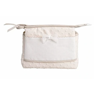 Contents: at home, you will receive a travel bag made of plain beige fabric with 3D polka dots, with a white Aida embroidery on the front and matching details. It is a very versatile organiser with a water-repellent interior designed for new parents who want to keep their baby cream and changing essentials handy but can also be used for makeup or as a travel kit. Features: the dimensions of the bag with zip are 24 x 19 x 10 cm; it has an Aida pocket with 55 holes, which measures 22 x 9 cm. The embroidery insert has a beige zigzag crochet stitch at the top and a striped fabric trim at the bottom. The middle bow fixes the Aida to the middle part of the bag and prevents it from taking an unsightly position, but can be easily sewn off for easier embroidery. 14 CT/55 HOLE AIDA FABRIC – This fabric is the most commonly used embroidery fabric for cross stitch. Its precise weave forms a checkerboard pattern that allows you to guide the passage of the needle and easily get clean, regular crosses. The 55 hole Aida has 55 squares in 10 cm. This type of Aida is most commonly used by regular embroiderers, but is also great for those who want to try cross stitch for the first time. Made in Italy – Our activity is based on the production and sale of baby and laundry accessories. We use high-quality raw materials from natural cotons. The design and production are fully implemented in Italy. Distinctive feature of fillet products are the inserts in canvas aid for embroidery, the use of piquets and quilted fabrics with a wide range of colours and patterns that always keep up with the new trends Agofil was founded in 1995 and is the leading manufacturer of the Filet label, which is known for its products. The fillet label is widely distributed in the best shops and department stores in the country and also spreads beyond the Italian borders and comes to France and Spain.