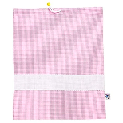 Filet Yarn Dyed Checked Nursery Bag with Aida Embroidery, Pink and White