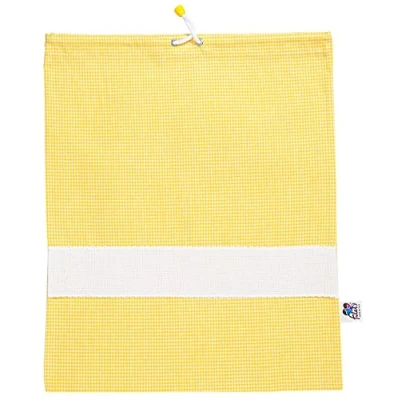 Filet Yarn Dyed Checked Nursery Bag with Aida Embroidery, Yellow and White