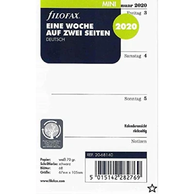 Filofax Personal Calendar 1 Week on 2 Pages Vertical (German) 2026