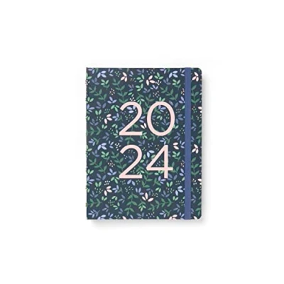 2024 patterned year planner with elastic closure Hard cover with 100gsm pages Week to view diary with tabbed monthly overview Dotted notes pages, 2 sticker sheets, patterned storage envelope Compatible with Filofax A5 notebook refills