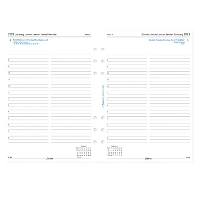 Filofax A5 diary Day per page format January to December 2023 White paper Paper size 148mm x 210mm