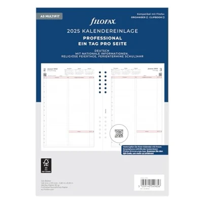 AmazonFilofax A5 Professional 1 day on one page (German) 2025 Durable and hard-wearing Provides useful features for everyday work Suitable for various office applications Intuitive handling for efficient work