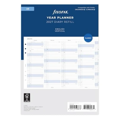 AmazonFilofax A5 2027 Year planner refill 100gsm fountain pen friendly paper Compatible with Filofax A5 size organisers / Clipbooks White paper Paper size 148mm x 210mm