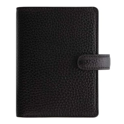 Soft leather cover with tab fastening Traditional rambling grain Contains week to view diary Selection of undated papers Page size 105mm x 67mm