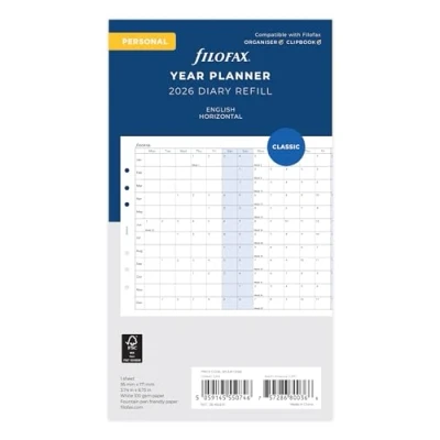 AmazonFilofax Personal 2026 Year planner refill 100gsm fountain pen friendly paper Compatible with Filofax Personal size organisers / Clipbooks White paper Paper size 95mm x 171mm
